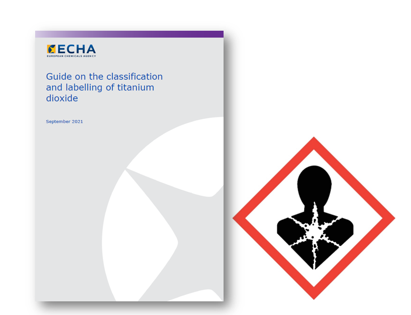 2021년 9월 유럽 화학물질청(ECHA)에서는 이산화티타늄의 분류와 라벨링에 대한 가이드라인을 새로 편찬하였습니다. 이에 따르면, 공기역학적 지름이 10μm이하인 이산화티타늄 입자를 1% 이상 포함했을 시, 이산화티타늄이 흡입될 경우 발암물질로 분류 될 수 있습니다.