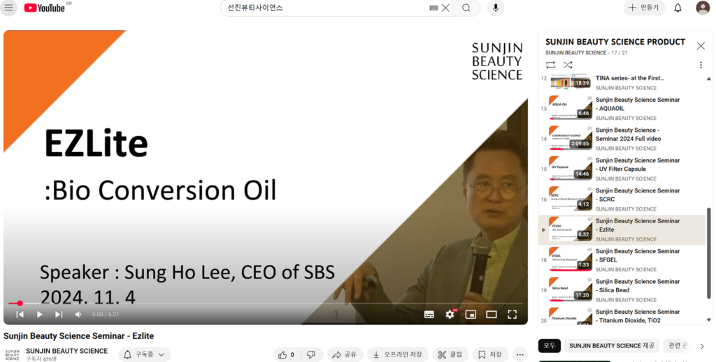 이러한 동영상이 궁금하신분들은 유튜브에 직접 ‘선진뷰티사이언스’를 검색하시거나 아래의 링크로 접속해주시면 됩니다.