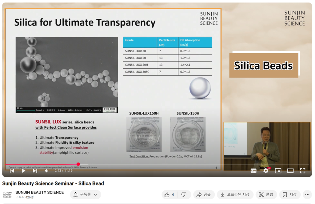 제품을 런칭한 이래로 고객들로부터 호평이 가득한 투명성을 향상 시킨 실리카, SUNSIL-LUX 시리즈 등 다양한 제품에 대하여 소개한 내용을 주제에 맞도록 각각 편집해 놓았으니 원하시는 제품 및 주제에 대하여 선택하여 설명을 들으실 수 있습니다.