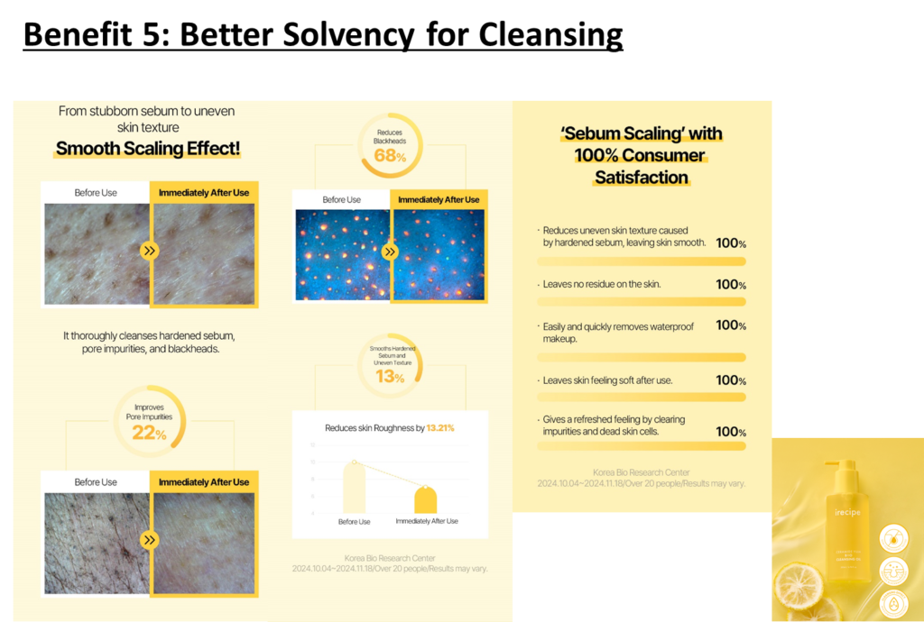 또한 복잡한 발효 과정과 불필요한 부산물이 없습니다. 효소의 정밀한 작용 만으로 완성되어 지속가능성까지 담은 ‘클린 뷰티 2.0’에 적합한 오일 입니다.