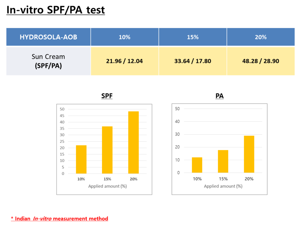 또한, 적용 농도에 따라 안정적인 SPF 및 PA 수치를 확보할 수 있어, 원하는 차단 지수로 맞춤형 설계가 가능합니다.