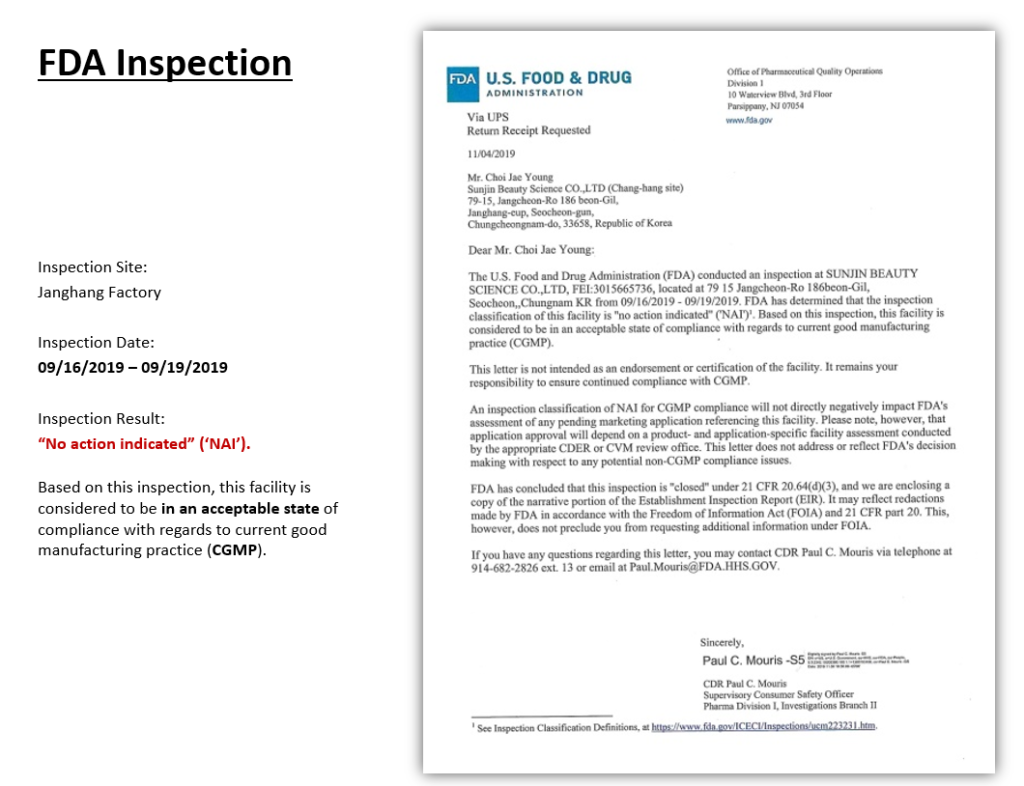 마지막으로 SUNZnO-200AS & SUNZnO-200SA는 FDA Inspection을 받은 API GMP 제조 시설에서 생산한 품질을 인정받은 징크옥사이드 입니다.