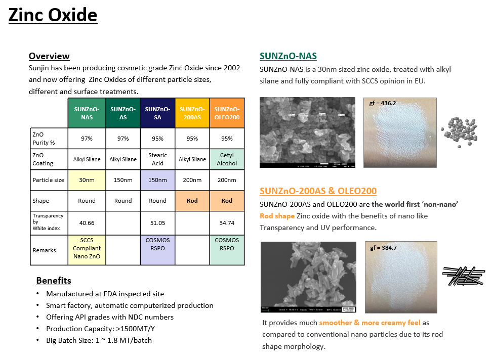그밖에도 선진뷰티사이언스에서는 FDA Inspection을 받은 API GMP 제조 시설에서 생산한 다양한 징크옥사이드 제품을 판매하고 있으니 많은 관심 부탁드립니다.