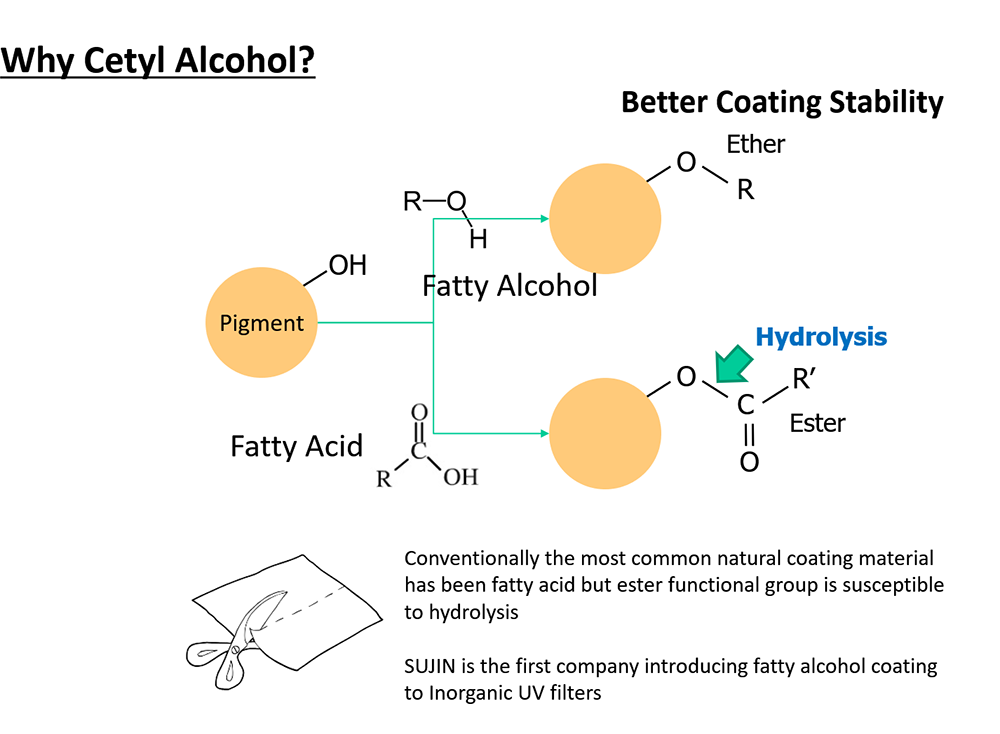 색조 화장품(Maek-up)에서 색을 나타내는 화장품 소재가 안료(Pigment)입니다. 일반적인 색조 화장품은 연속상이 오일(Water in Oil)이므로 피그먼트는 오일에 잘 분산되게 하기 위하여 친유성 처리를 합니다. 종래 화장품 업계에 가장 널리 사용되었던 친유성 처리 방법은 실리콘계 표면 처리제(Alkyl Silane, Methicone, Dimethicone 등)를 이용하는 방법입니다. 실리콘계 표면 처리제는 1980년대 이후 화장품 업계에 널리 도입 사용되었는데, 실리콘계 표면 처리제가 종전의 지방산을 이용한 표면 처리제의 단점인, 가수 분해 및 산패로 인해 성능 저하, 특이취 등의 문제를 크게 개선하였기 때문입니다.