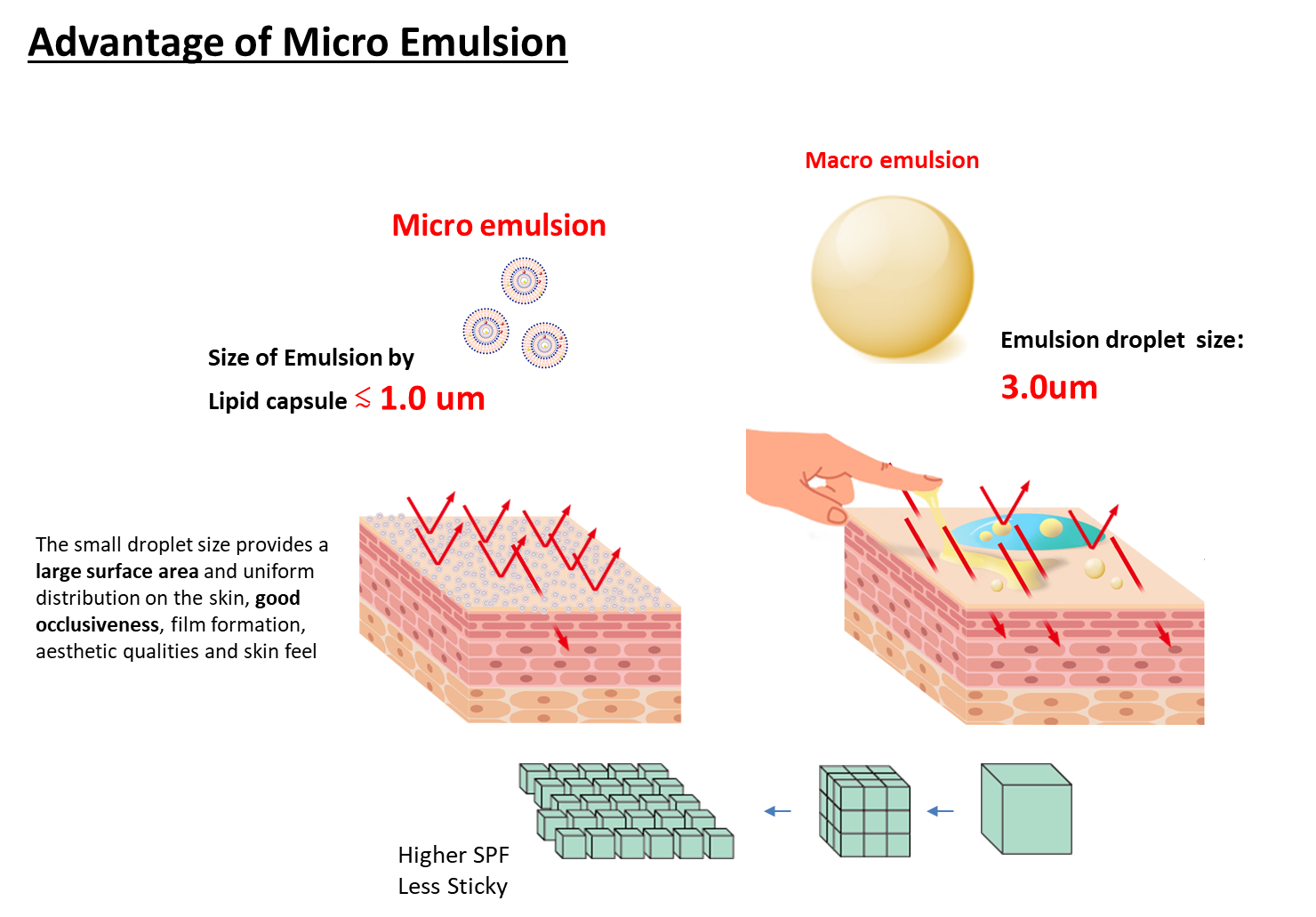 이는 UV 필터가 다중층 구조로 캡슐화되어 도포 시 피부 표면 잔존을 감소시키는데  기인합니다.
