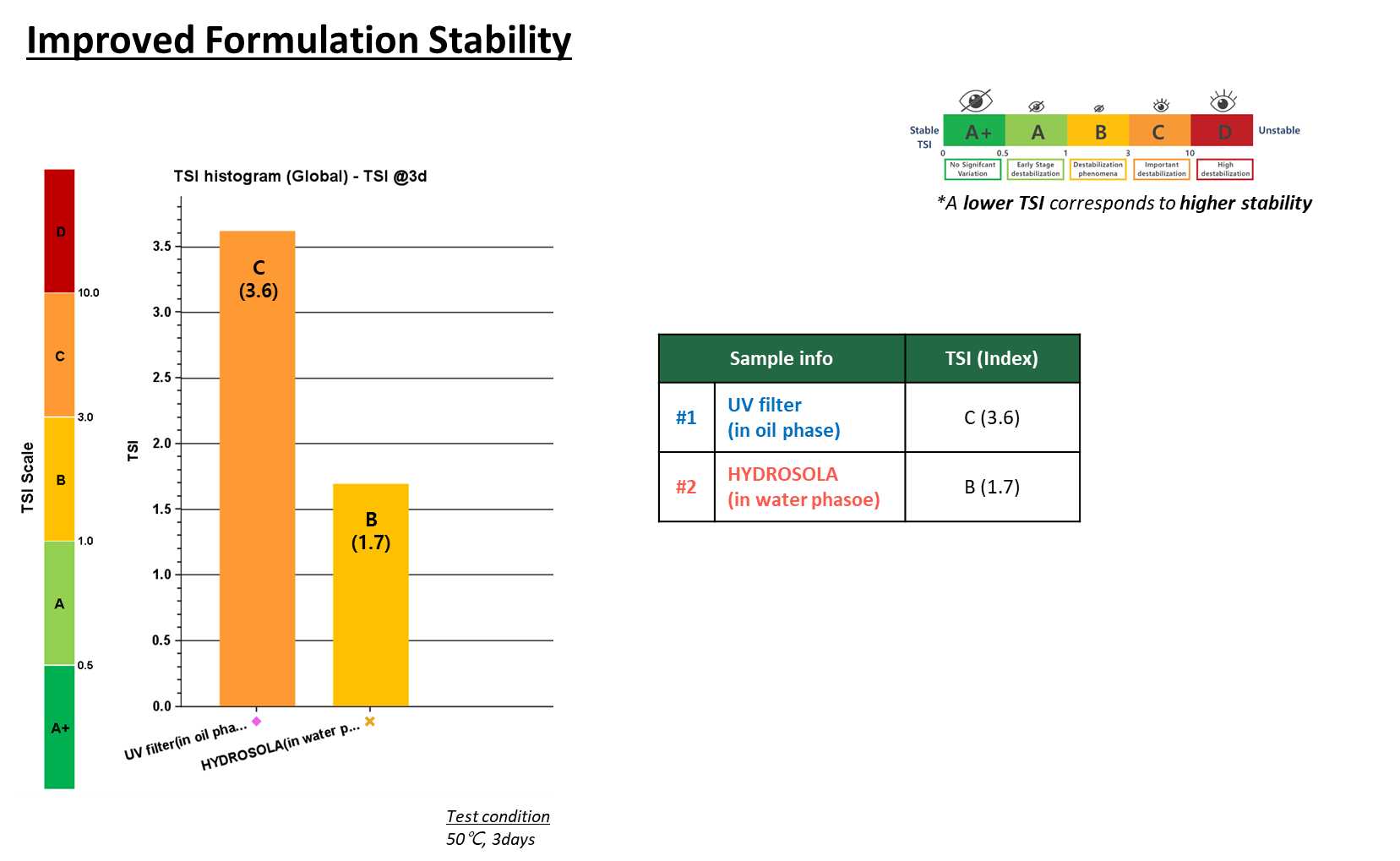 Benefit 1: 수상에서 균일 분산되는 유기 자외선 필터 시스템