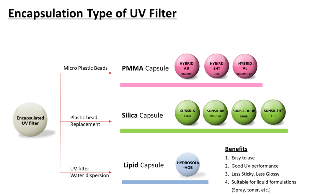 최근 자외선 필터 캡슐화 기술이 다양화되면서, 제형 개발의 선택지도 넓어지고 있습니다.