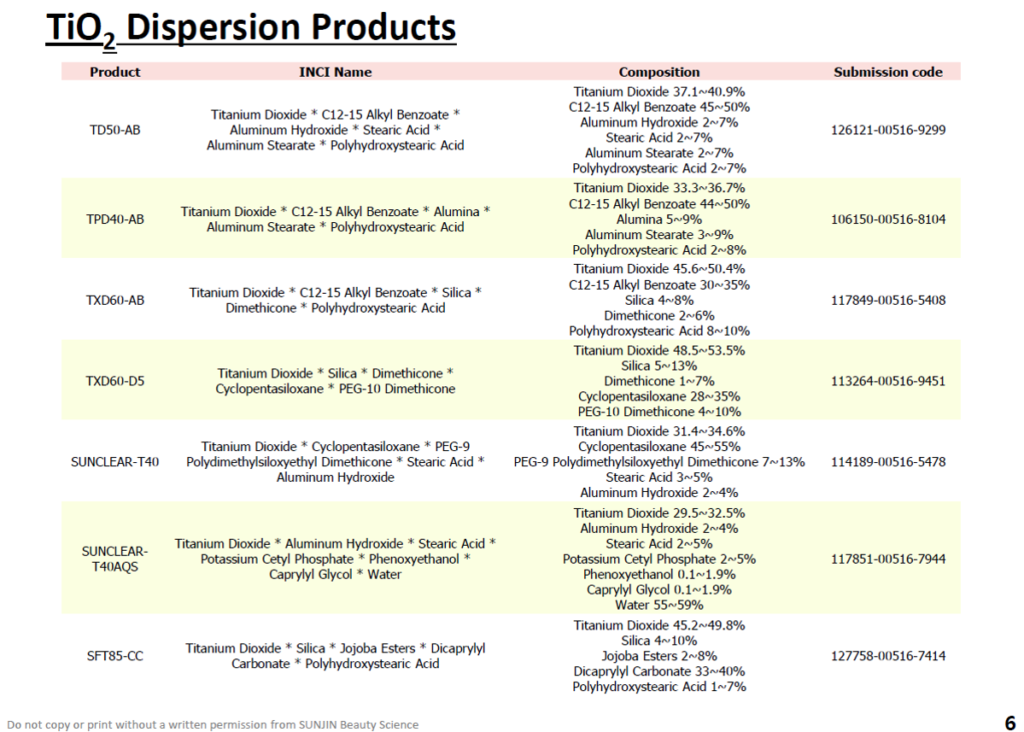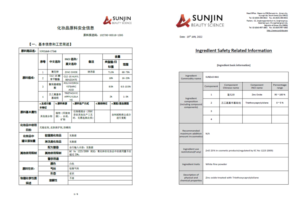 TiO2, ZnO등 UV Filter, Silica, PMMA 등 다양한 원료에 대해 등록을 완료하였고 등록 관련 정보를 제공하고 있습니다.