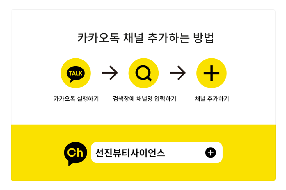 카카오톡 채널 관련하여 문의 사항이나, 제품 관련 문의사항은 언제든 선진뷰티사이언스 카카오톡 채널로 문의 주시면 성심 성의껏 답변해드리겠습니다.