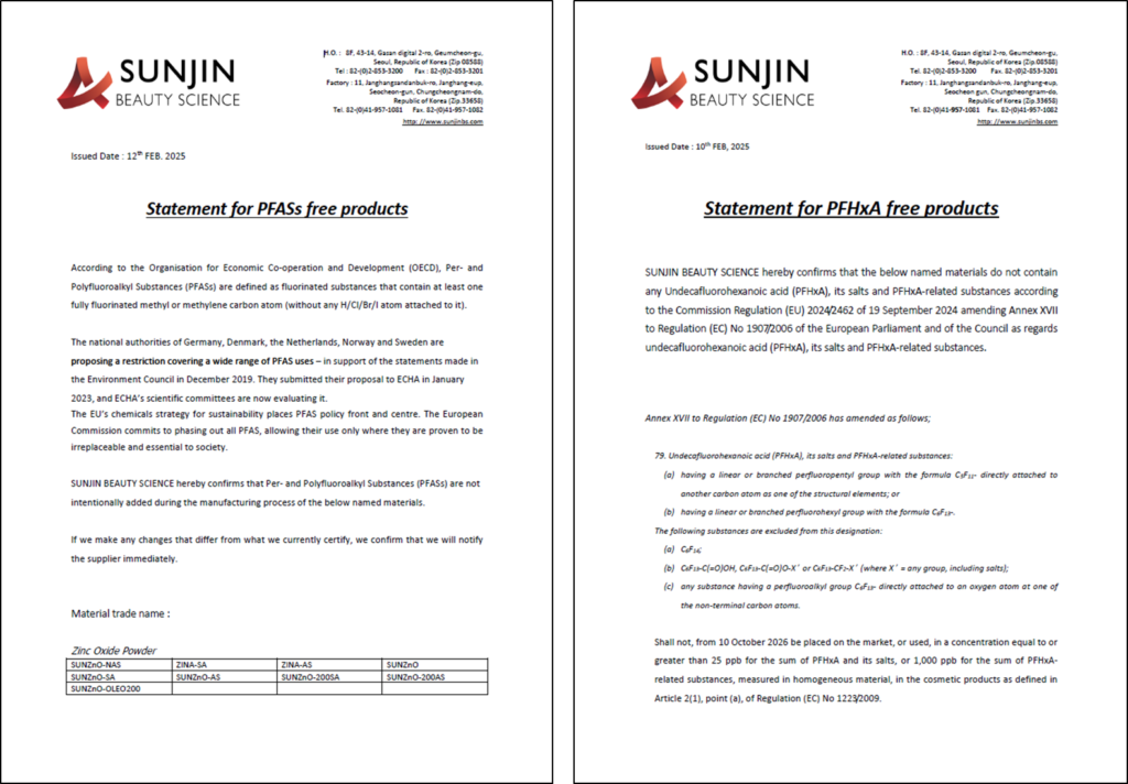 이로 인해 최근 전 세계의 고객사로부터 PFAS 관련 문의와 성명서 요청이 급증하고 있습니다.