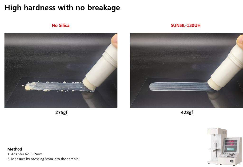 3.0cc/g 이상의 높은 흡유력과 스틱 경도 강화 효과를 갖춘 스마트 실리카, SUNSIL-130UH를 소개합니다.