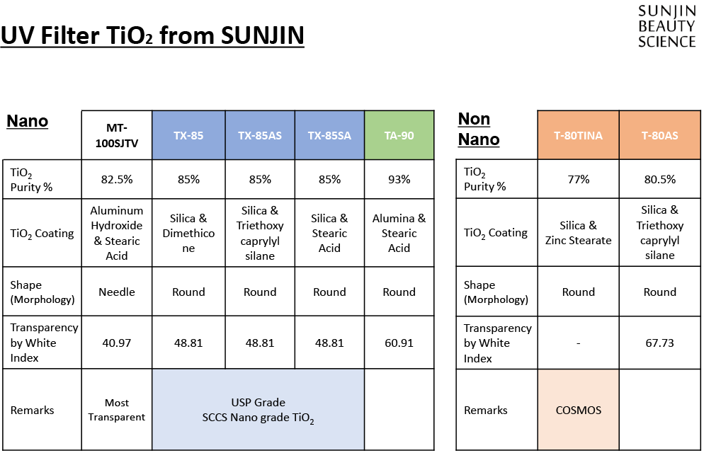 당사에서는 다양한 사이즈(나노, 논나노), 표면처리(실리콘계, 천연계)된 Titanium Dioxide를 공급하고 있습니다.