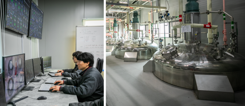 첫번째로 톱다운 클로즈드시스템을 위하여 대규모 설비 투자를 진행하였습니다. 클로즈드 시스템이란 화학공업 공정에서 반응 생성물 등 반응에 관여하는 물질을 외부 노출 없이 일관적으로 처리하는 공정시스템으로 외부 미생물에 의한 오염 발생 가능성이 낮습니다.