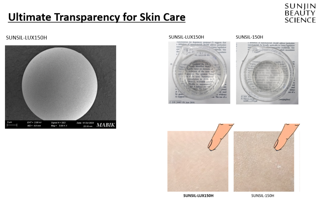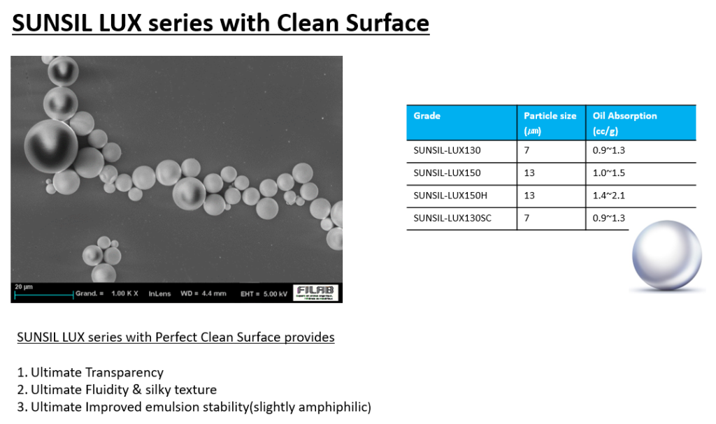 선진뷰티사이언스의 프리미엄 실리카, LUX Series는 매끄러운 표면을 지니고 있어 구현할 수 있는 투명함과 사용감이 가장 큰 특징입니다. 이러한 특징들은 고객의 니즈를 다방면으로 충족할 수 있어 2022년 출시 이후 꾸준히 사랑 받고 있는 제품입니다.