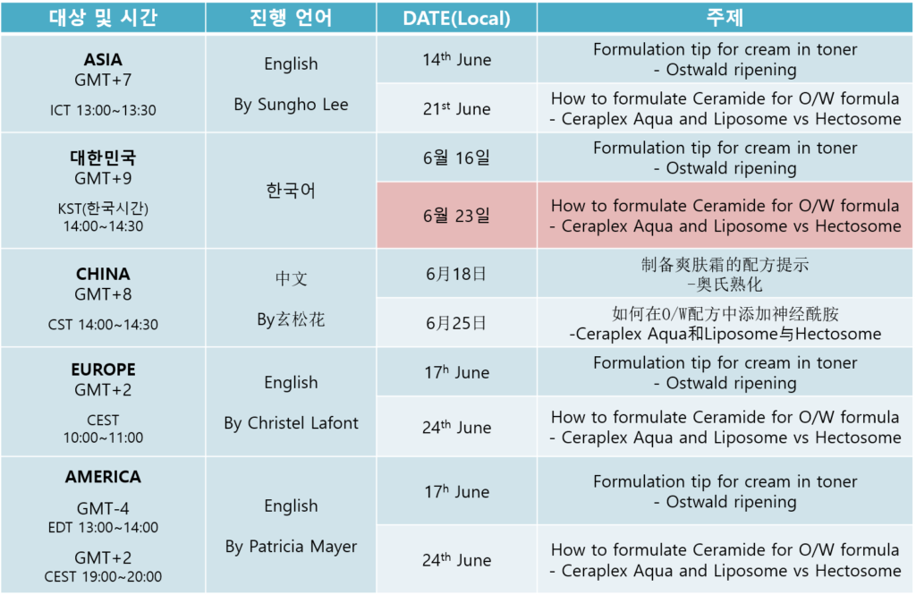 6월 23일 진행 될 선진 웨비나(ZOOM)에서는 세라마이드를 O/W 제형에 쉽게 사용하는 방법에 대해 소개해드리겠습니다.