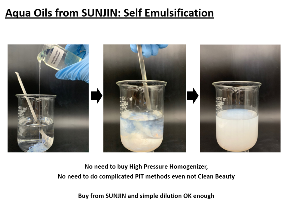 AQUA CCTG 및 AQUA PHYTOSQUALANE는 고압의 Homogenizer 및 가열 공정 없이 물에 간단히 풀어 사용하실 수 있는 나노 에멀젼 원료 입니다.