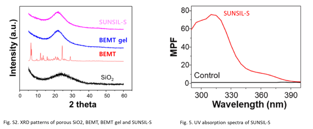 선진뷰티사이언스는 실리카 제조, 캡슐화, 코팅 기술을 기반으로 유기자외선차단제(BEMT)를 다공성 실리카에 담지한 SUNSIL-S를 개발했습니다.