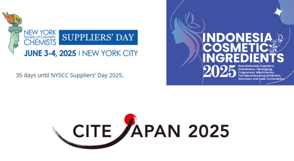 2025년 5월 및 6월, NYSCC, ICI Jakarta, CITE Japan 등 주요 글로벌 전시회에 참가하여, K-뷰티의 트렌드와 관련된 최신 기술 및 제품을 선보일 예정입니다.