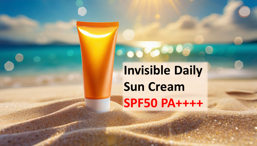 Invisible Daily Sun Cream는 실리카 캡슐 제품 SUNSIL-S를 사용하여 SPF50, PA4+의 강력한 자외선 차단력을 가진, 끈적이지 않는 사용감을 가진 O/W 혼합자차 처방입니다.