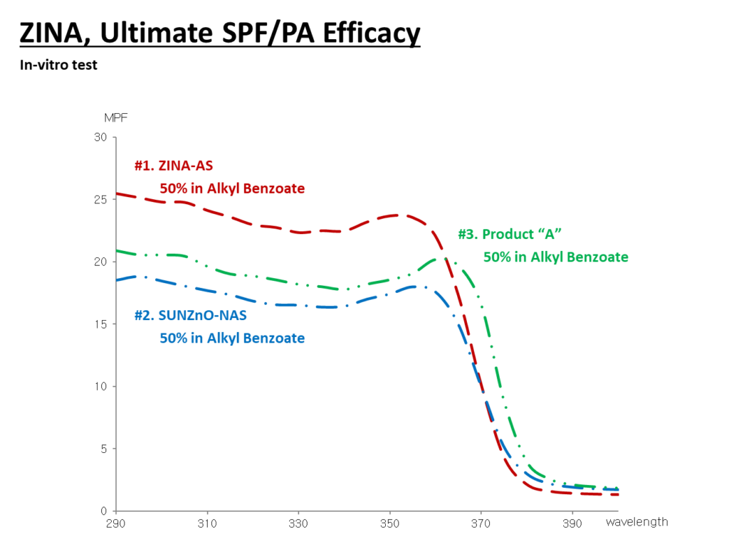 이 처방은 징크 온리 제형의 장점은 극대화하면서 백탁 현상이나 만족스럽지 못한 사용감을 해결하기 위한 솔루션으로 선진뷰티사이언스의 특화된 산화아연 원료, ZINA 시리즈를 사용했습니다.