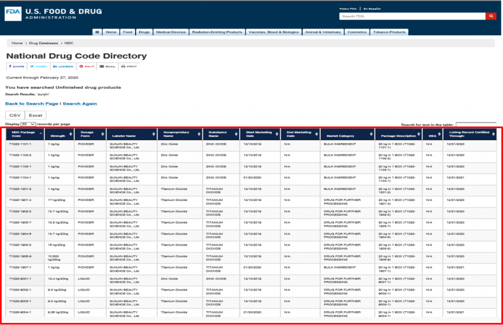 따라서, 미국에 판매되는 자외선 차단 화장품을 위해서는 NDC가 등록 된 자외선 차단 원료를 사용해야 합니다.