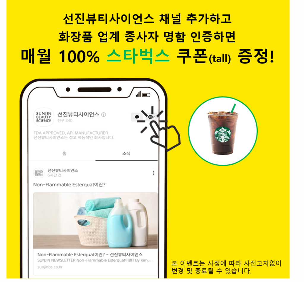 카카오톡 채널 가입 인증을 위하여 화장품 업계에 종사하시는 분들은 본인의 명함을 카카오톡 채널 채팅으로 보내주세요!